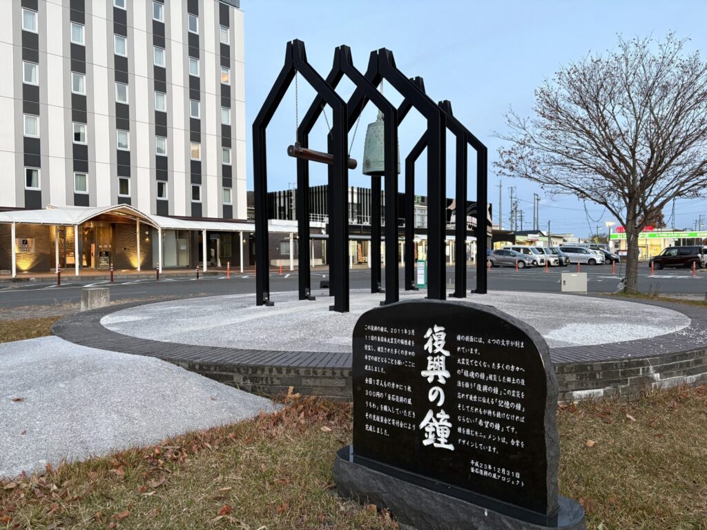 そして、釜石駅前に立ち、東日本大震災の記憶と向き合う。映像で見てきた街に実際に降り立つと、やはり感じるものがある。復興の鐘を前に、この街が歩んできた時間の重さをあらためて思った。